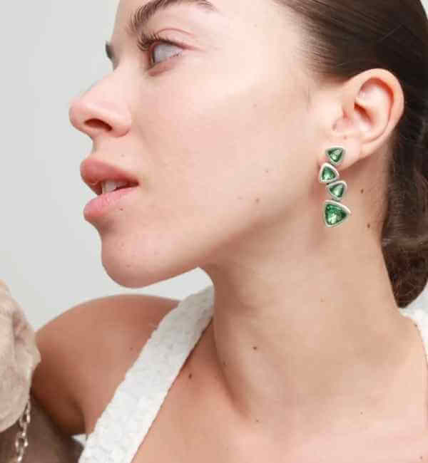 Künstlerische Ohrringe mit vier dreieckigen Kristallen