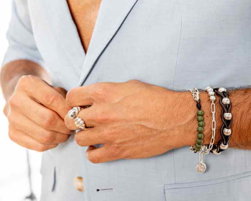 Dieses lässige Lederarmband mit Silberperlen, die ein Juwel umgeben, verkörpert Individualität. Jedes Stück wird zu 100 % in Spanien von b&g jewelry handgefertigt und vereint Rockstil mit feinster Handwerkskunst. Ein perfektes Accessoire für einen coolen, extravaganten Look, der Persönlichkeit durch einzigartiges Design ausdrückt.