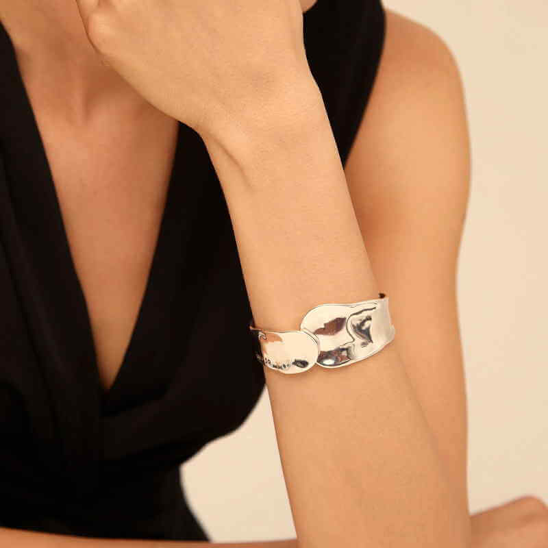 Suchen Sie einen auffälligen, opulenten Armreif mit Charakter? Dieser breite Silber Armreif von UNOde50 vereint künstlerisches Wellendesign mit hohem Tragekomfort. Die offene Form mit Federmechanismus sorgt für einfaches Anlegen, während die geschwungenen Linien einen ausdrucksstarken Look schaffen. Ein Armband, das für sich spricht—elegant und rebellisch zugleich.