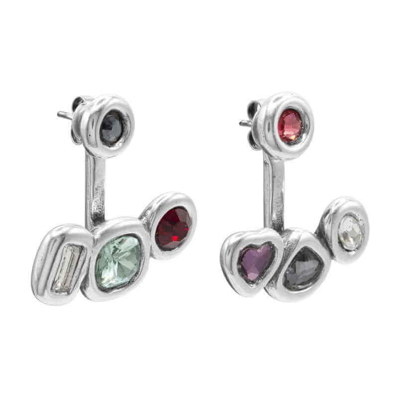 The two-in-one Collage Earrings are silver-plated and combine different motifs across the width. The asymmetrical crystal earrings are made of two different colored and designed earrings, to create creative a personalized look. This captivating, colorful mosaic arrangement is part of the Ciclon Collage Collection. A unique, timeless piece that transforms any outfit. Great craftsmanship: 100% crafted and designed in Spain by the Spanish jewelry brand Ciclon, made of high-quality silver-plated metal.
