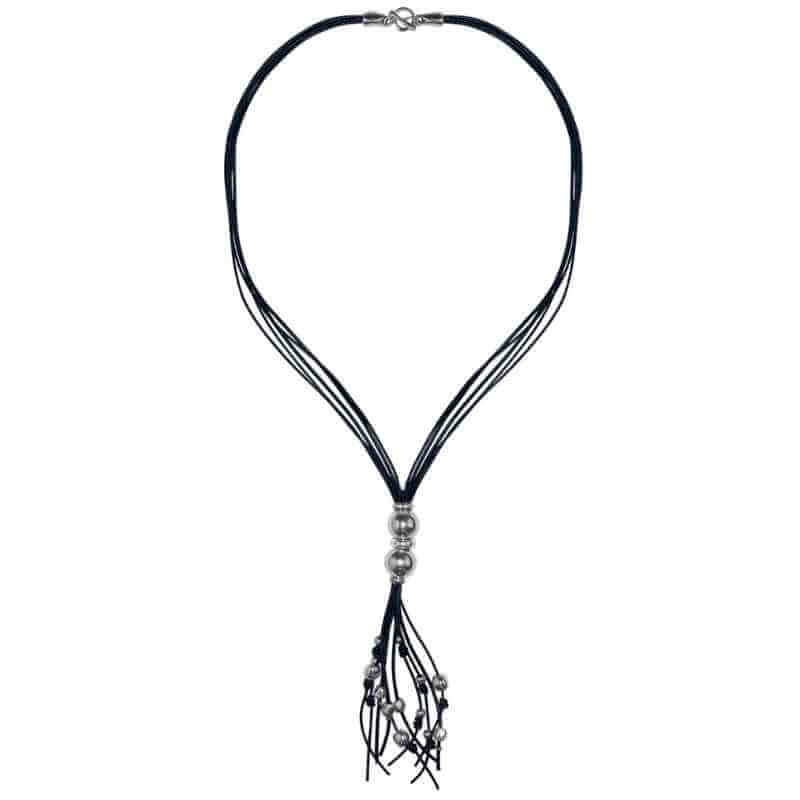 Destaca tu estilo con este largo collar bohemio de cuero, adornado con varios colgantes y llamativas cuentas y esferas de plata. Una pieza atemporal y versátil, hecha a mano en España por Ciclon, perfecta para el día a día y para expresar tu personalidad. Diseñado con una excepcional artesanía por la reconocida marca de joyería española.