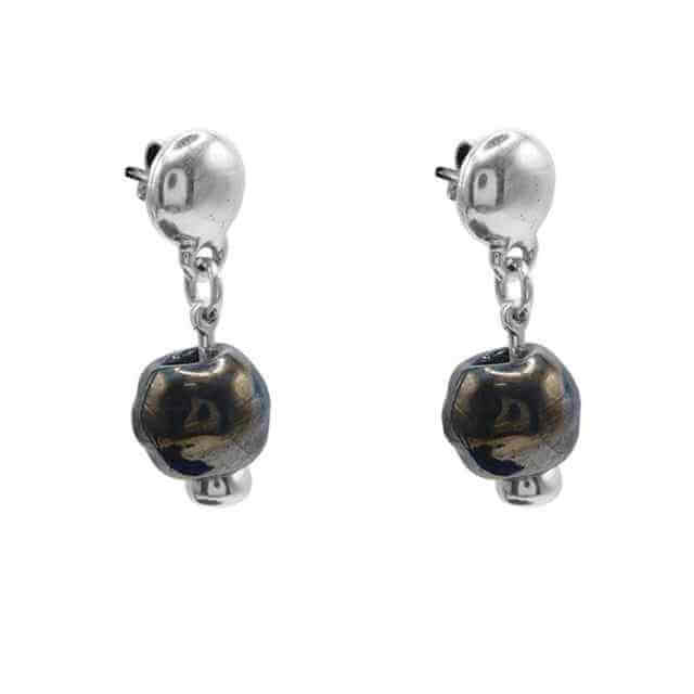 Pendientes atemporales realizada con una cadenita corto en baño de plata y una bola de cristal Murano seductora de color luminoso. Aretes con cierre a presion de Ciclon