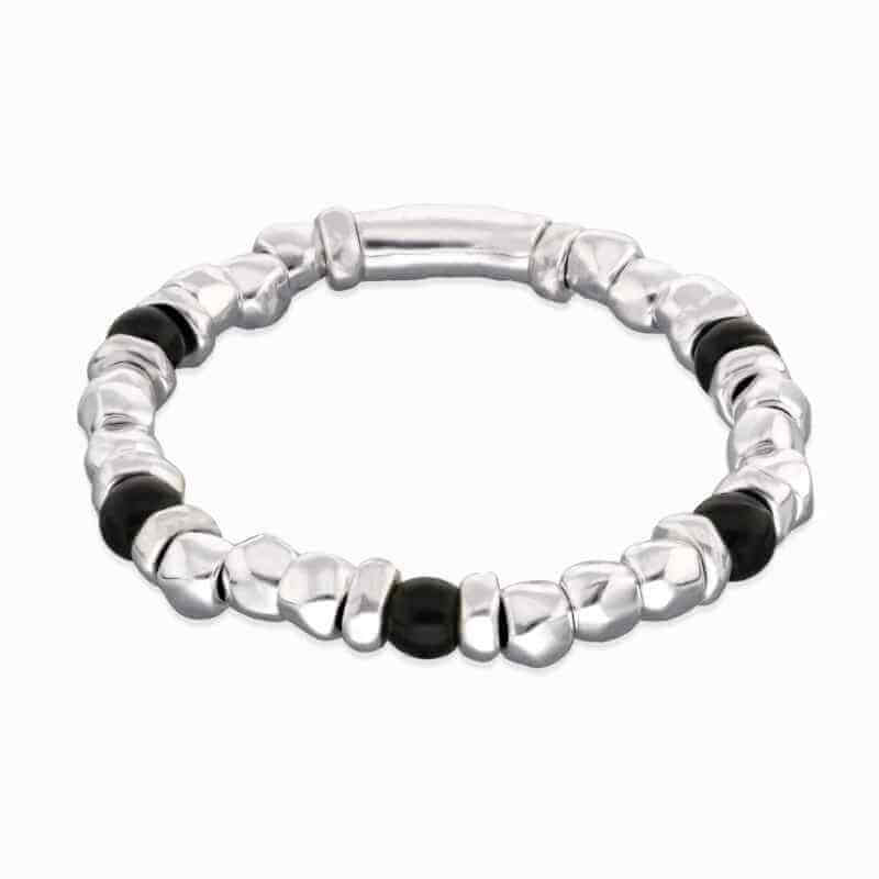 Pulsera elastico con cuentas de plata y cristales de murano negro