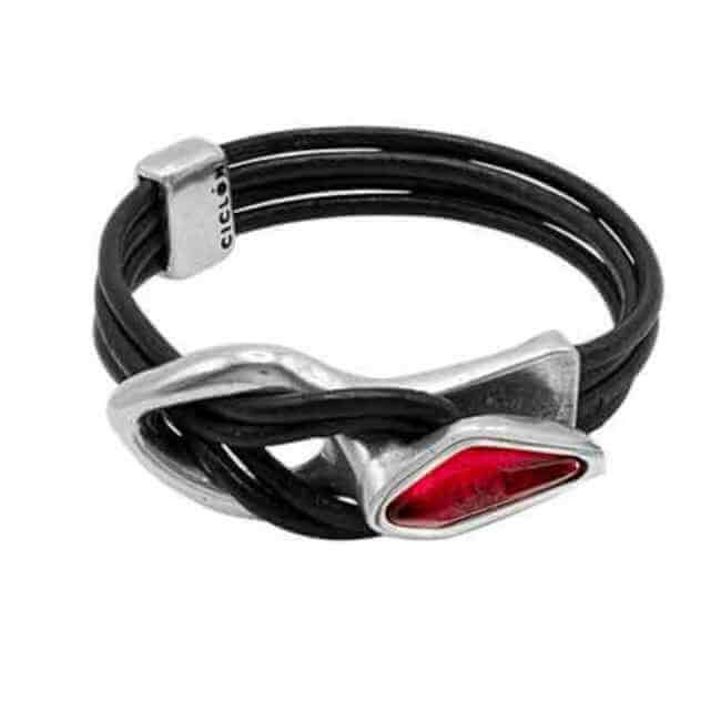Descubre este brazalete semirrígido de plata con cuatro cordones de cuero y un radiante cristal rosa en el centro. Elaborado artesanalmente en España por Ciclon, esta elegante joya combina originalidad, dinamismo y una excelente artesanía. Perfecto para un look sofisticado, ofrece joyería asequible con un diseño único. Una marca de joyería española, 100% elaborada y diseñada en España.